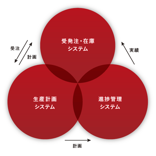 画面に表示される必要部品の情報は、生産計画システムと進捗管理システムで管理・作成されます。